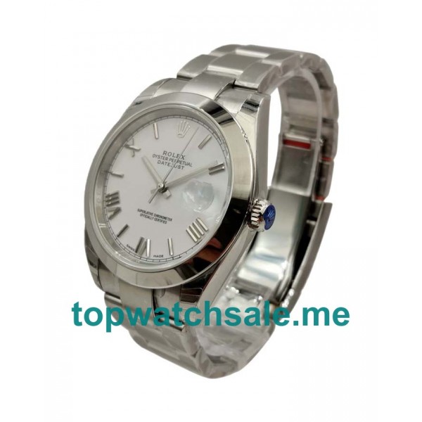 The AAA perfect Rolex Datejust replica watches feature steel cases and white dials with Roman numerals and date window. The 40mm UK cheap high-quality fake watches are designed for men and have simple and clean look.